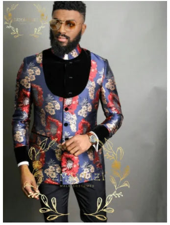 ST Cassy High Quality Retro carving Party Dress Slim Fit Tuxedo Prom Suit Fashion black Male Groom Wedding three-piece