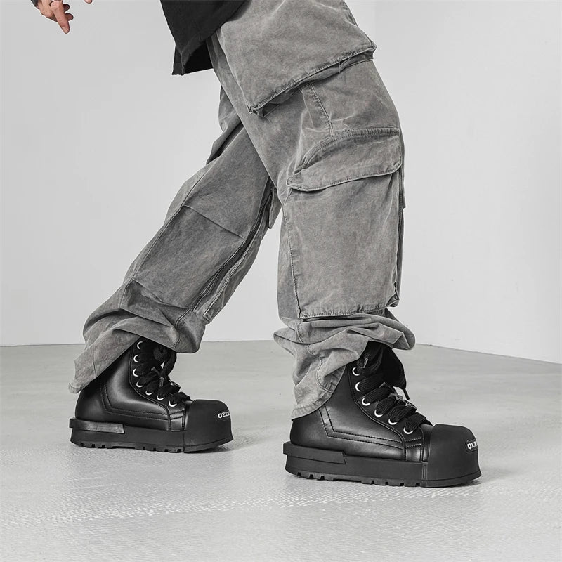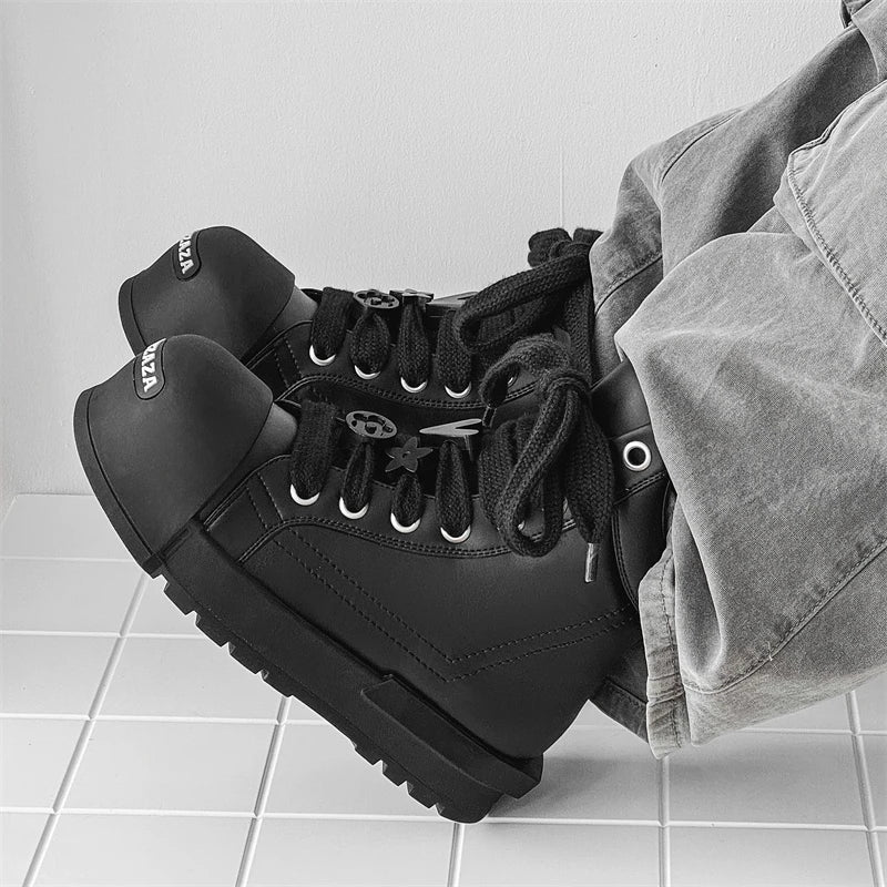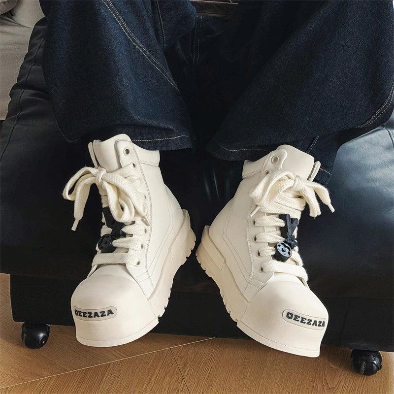 Black and white couple high top shoes Trendy quality design style Leisure Outdoor Fashion Party Daily thick soled youth shoes